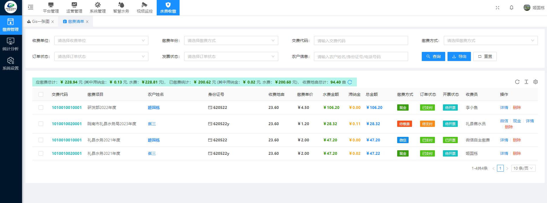 計量:專業(yè)流量計量設備對用戶水的用水量進行精準計量,系統(tǒng)自動計算生成水費賬單信息。